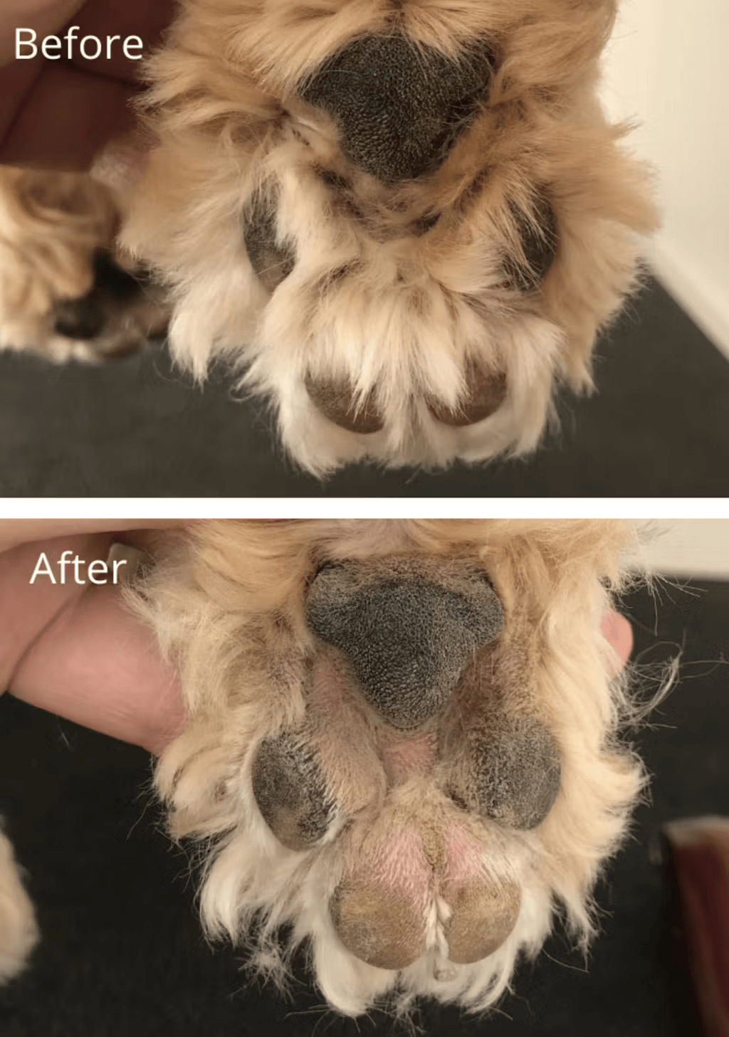 So happy with the results! My dog’s paws look amazing and his face is so fresh and clean. He’s more comfortable and I couldn’t be happier!